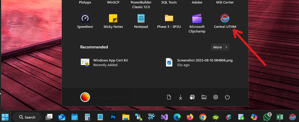 And finally, CENTRAL icon is created to Start Menu, Click The Icon to start the App.